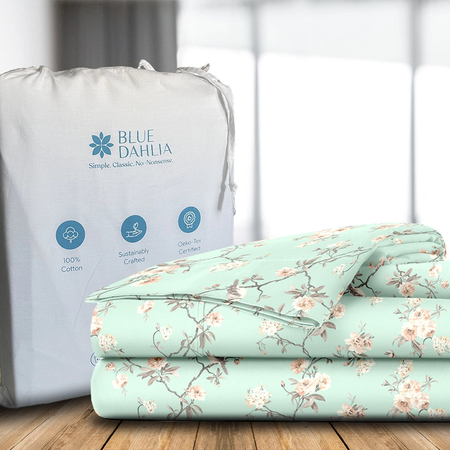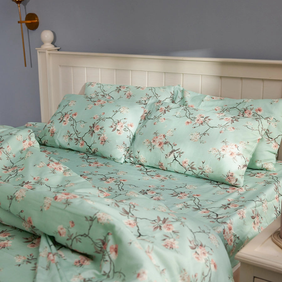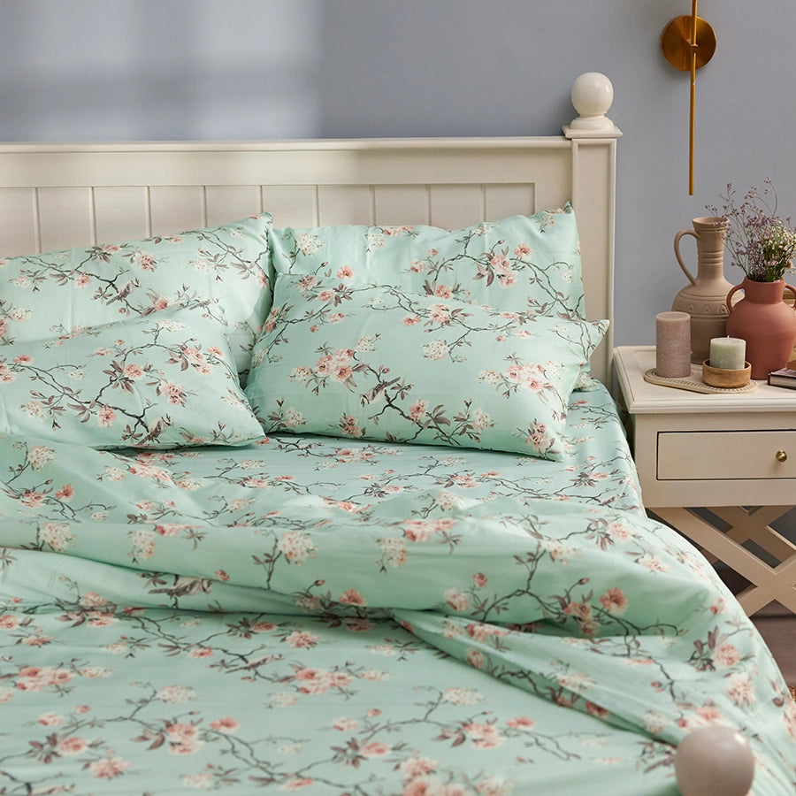 Does your bucket list also include planning a trip to Japan and seeing the Cherry Blossoms bloom? We can't promise you a ticket but we can bring the Cherry blossoms to your bedroom.Made from 100% cotton, this sheet set is an absolute favourite.Note:- Single size includes 1 pillowcase.- King sizes include 2 pillowcases