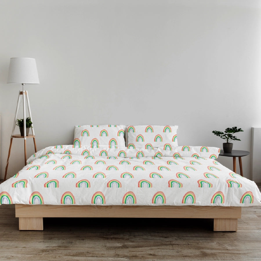 Bring home a burst of colour and happiness with our Rainbow Sprinkles Collection -designed to brighten up your space with playful patterns and premium comfort. Inspired by cheerful sprinkles and vibrant rainbows, this bedsheet instantly gives your bedroom a fresh, lively vibe while keeping you snug and relaxed all night long.